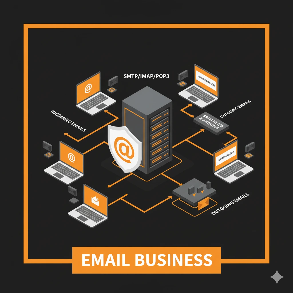 Business Email hoạt động trên các máy chủ email chuyên dụng. Những máy chủ này được tối ưu hóa cho việc gửi, nhận và lưu trữ email.